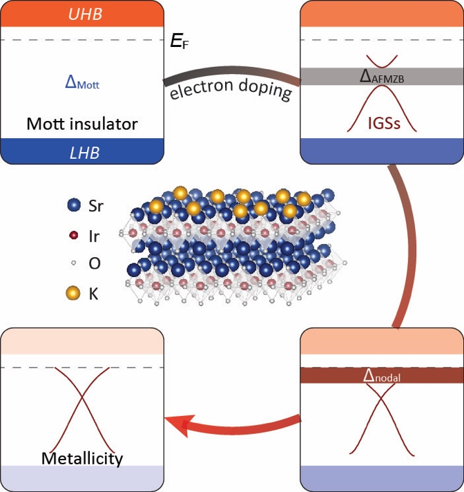 图:电子掺杂Sr₂IrO₄能带结构的演化过程示意图