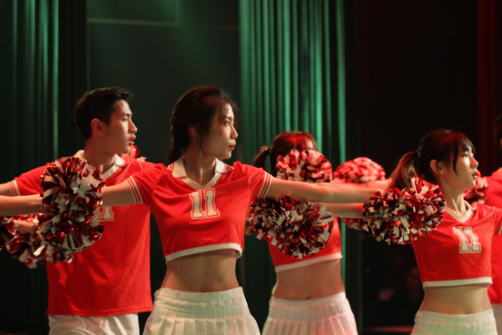 研究生为大家带来了开场舞《梦之选拔》,他们身着红衣,手持拉花,随着轻快、明亮的背景音乐奏出,他们自如地挥动手中的拉花,舞姿轻盈。一曲舞毕,观众们掌声不断,彻底点燃了现场的气氛。
