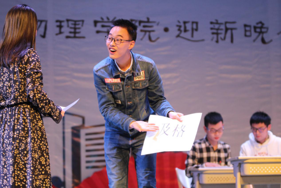 团委办公室、心协、实践部同学们主演的哑剧《考试》生动幽默、引人入胜,同时引人深思,在哑剧的最后传递给每一位观众大学学习的重要性;学子们要将智慧和汗水奉献给这美好的青春四年,才不会为当年的一时欢乐而悔恨。接着是潘子恒等三位同学带来的歌曲串烧,有的甜美可爱、有的炫酷多彩、有的欢快中带着忧伤;三首歌曲曲风各不相同,却又有机结合在一起,让人陶醉其中。