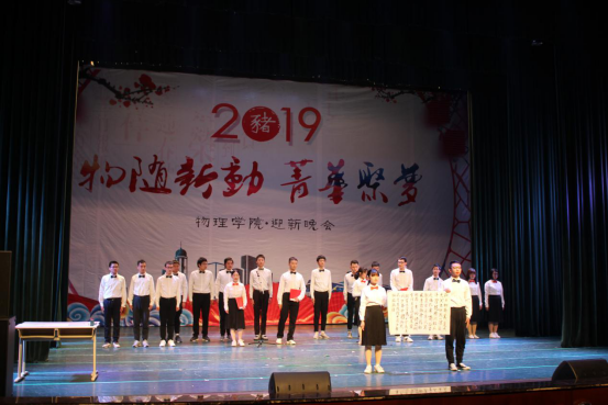 迎新晚会圆满结束,在每一位工作人员与表演人员的努力下,迎新晚会将属于物院的独特魅力以及新年的祝福,带给了每一位嘉宾,与他们共同度过了一个美好、欢乐的夜晚;物随新动,菁华聚梦,晚会衷心祝愿每一个人都能在新的一年里,实现属于自己的梦想;2019,物我同行!