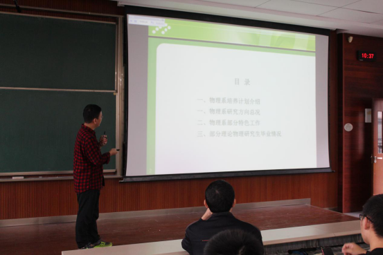 宣讲会伊始,吴兴刚教授为大家介绍物理专业的相关内容,主要对物理专业的导师概况、培养计划和研究方向做了详细介绍,条理清晰,为同学们疏通了思绪。吴教授的精彩介绍显示了物理学科所呈现良好态势,充分展示出了物理专业的内在潜力。此外,吴兴刚教授进一步细讲了幸运飞艇
