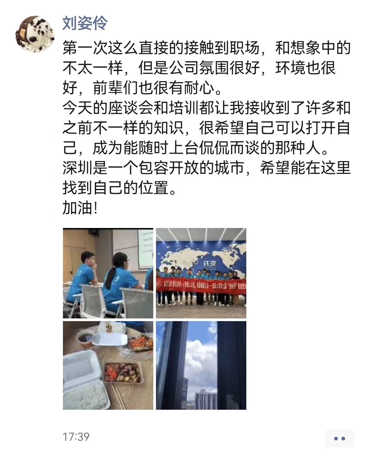 经过培训和参观,团队成员收获颇多,纷纷晒出了入职实习的欣喜和期待,接下来的一个月,他们将在各自岗位上锐意进取,精益求精,充分发挥自己的才能,努力成长为创新型、实用型和复合型人才。