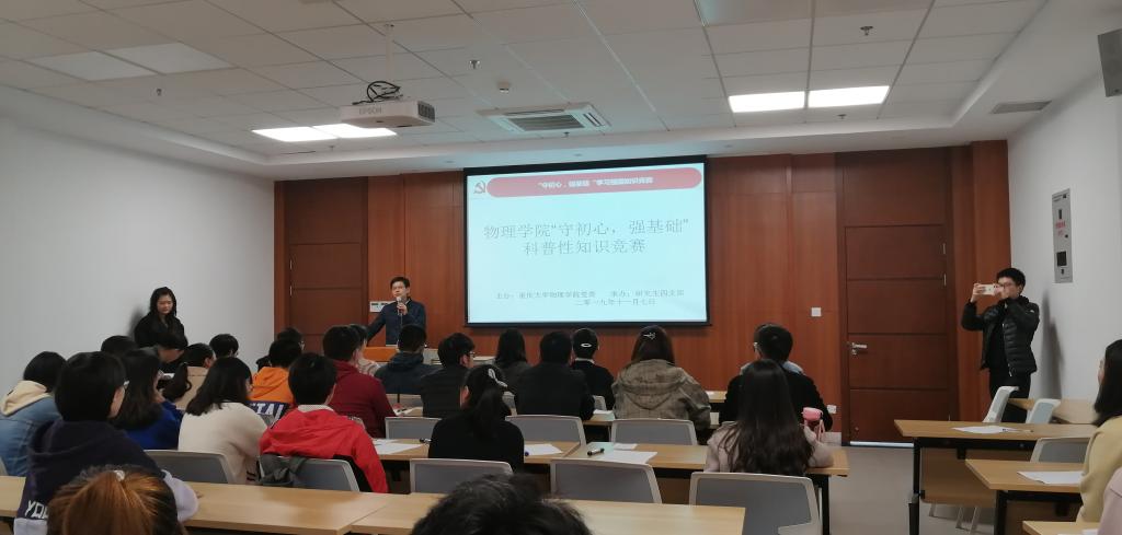 党委决定采取生动鲜活、喜闻乐见的方式进行一场科普性知识竞赛。2019年11月7日下午14点30分,活动在虎溪校区理学部108教室举行。幸运飞艇