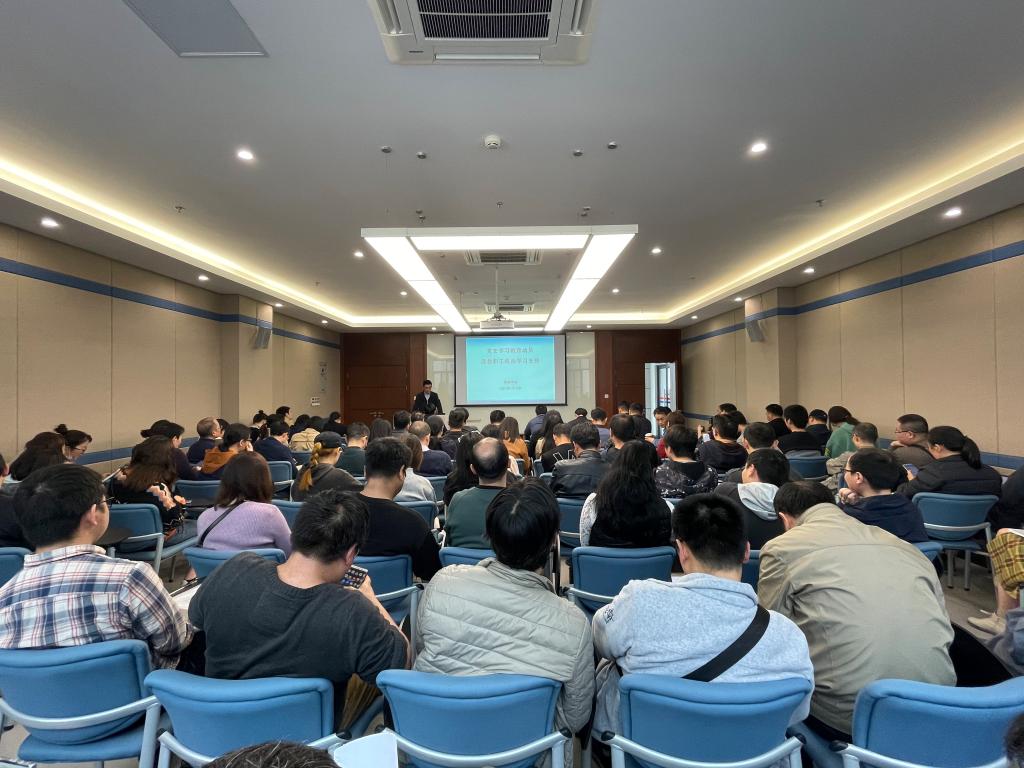 在理科楼LA208召开党史学习教育动员大会,专题学习习近平总书记在党史学习教育动员大会上的重要讲话精神,党委书记韩忠主讲,全院教职员工出席本次动员大会。