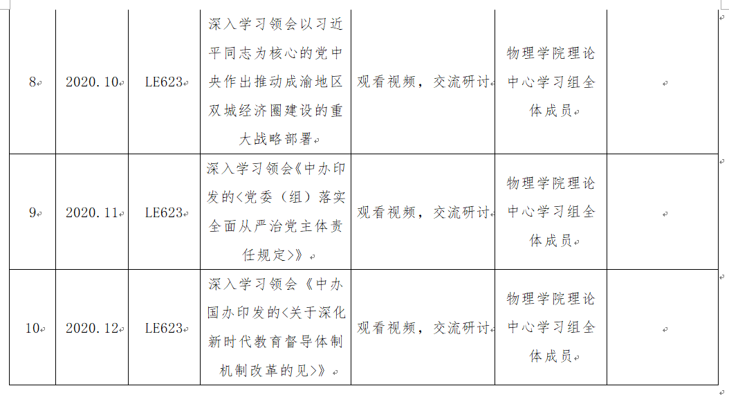 幸运飞艇 2020年党委理论学习中心组学习计划表