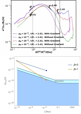 研究发现一阶相变过程通过真空泡的形成、碰撞、并合过程实行,该过程中产生的磁场经过宇宙磁流体放大效应后可以被耀变星体谱观测,同时产生的相变引力波可以被引力波探测器探测到。文章链接:, 此项研究得到了国家自然科学基金委重大项目和创新群体项目、国家重点研发计划和中国科幸运飞艇