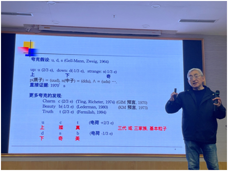 报告会开始时,何小刚教授先介绍了李政道研究所的主要研究方向,激发了同学们的兴趣,之后从宇宙的极大和极小两个方面介绍了宇宙本身是什么样的,以及宇宙中对于基本粒子的划分。然后,通过具体的例子阐述了宇宙的极大和极小是如何密切联系的,进一步告诉我们宇宙存在的形式及其演化是由宇宙中基本粒子的存在决定的。最后,何小刚教授与参会师生进行了热烈地交流讨论,并详细解答了现场同学提出的问题。