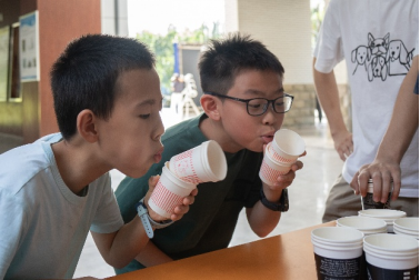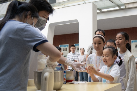 低温物理实验室何明全教授科研团队将-196℃的液氮倒入酸奶与冰淇淋粉的混合物中,瞬间白雾缭绕,宛如仙境。小朋友们一边惊叹于液氮倾泻时腾起的云雾,一边争相品尝现场制作的“星际冰淇淋”,在舌尖触碰到冰凉绵密口感的刹那,也真切体会到低温物理的神奇魔力。