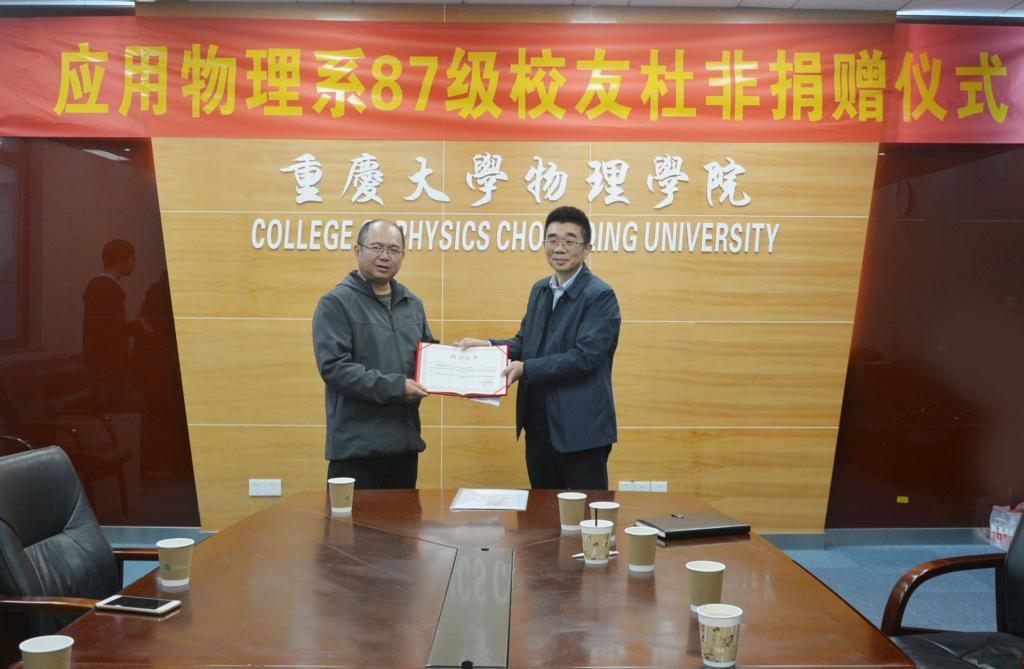 向杜非校友颁发捐赠证书和感谢信。