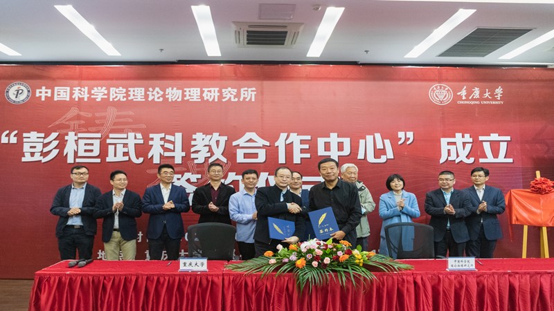 Witnessed by the ceremony participants, on behalf of Chongqing University and Institute of Theoretical Physics, Chinese Academy of Sciences, Xia Zhining and Feng Ji signed the agreement and Cai Ronggen unveiled the nameplate of "Peng Huanwu Science and Education Cooperation Center". Relying on the "Peng Huanwu Science and Education Cooperation Center", both sides will fully utilize their respective resource advantages, strengthen cooperation and exchanges, achieve the effective integration of science and education, and establish a comprehensive, wide-ranging and multi-level cooperative relationship.