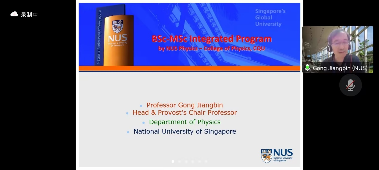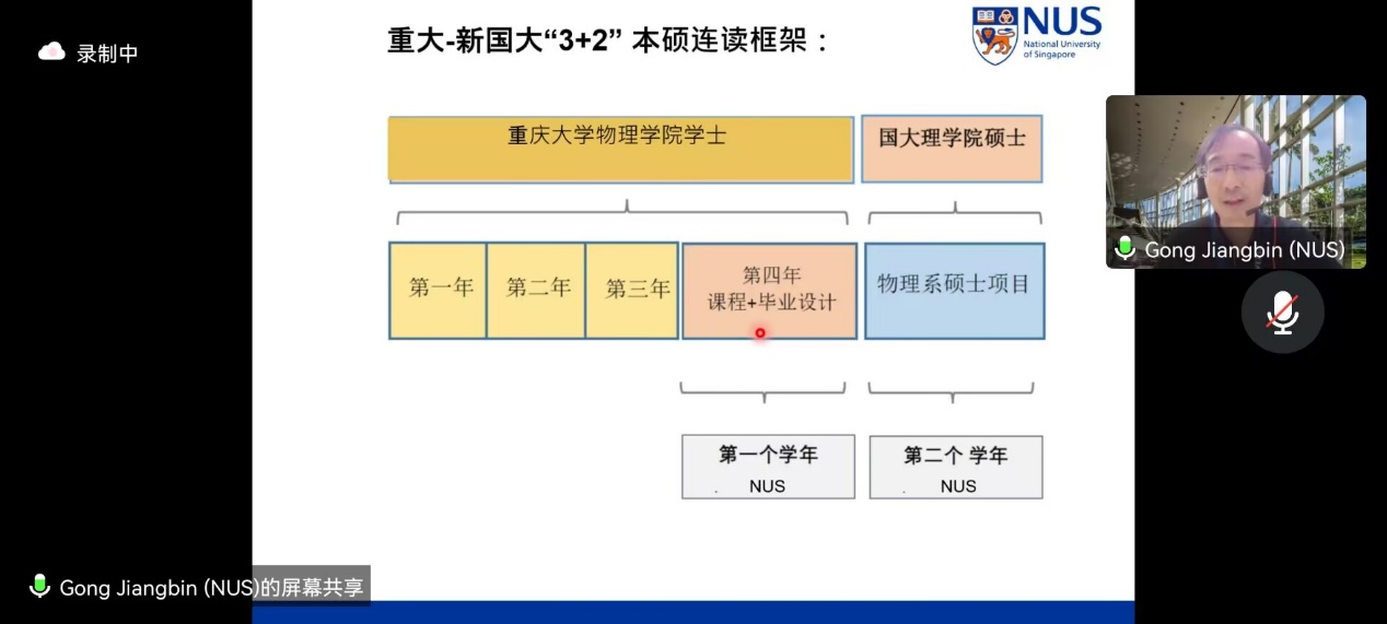 与新加坡国立大学(NUS)物理系本硕联合培养项目(3+2)说明会通过线上会议的形式举行,邀请到了新加坡国立大学物理系主任龚江滨以及副系主任王清海,为与会同学介绍项目细节并答疑解惑。幸运飞艇